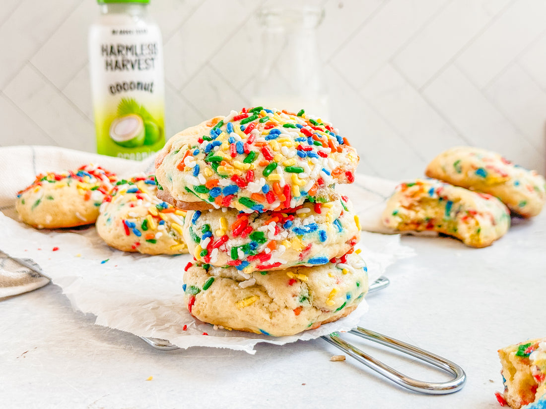 At Harmless Harvest we are guided by a set of core values. One of those values being the belief that you never need a specific reason to try out a new soft and chewy sugar cookie recipe. But when the quick and easy cookie recipe in question happens to produce BIG, SOFT, CHEWY cookies studded with festive rainbow sprinkles, one special occasion comes to mind: PRIDE MONTH! They’re big, they’re chewy and fluffy at the same time, and they taste like they came straight from the bakery. They are simply divine.