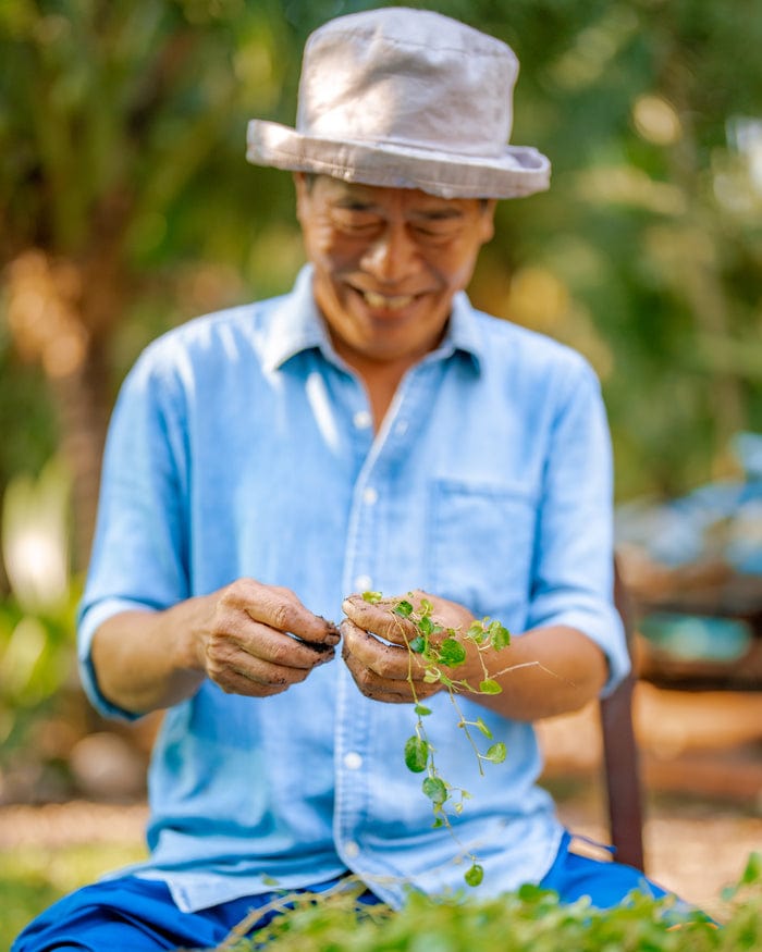 Khun Chamroen and his wife met at the farm they manage over 30 years ago, and continue to bring that love & care into their Nam Hom coconuts.