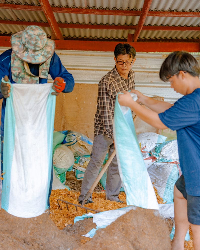 Khun Thianchai and his son have implemented several regenerative practices, including vermicompost and leaning into drying farm waste instead of letting it decompose in canals.