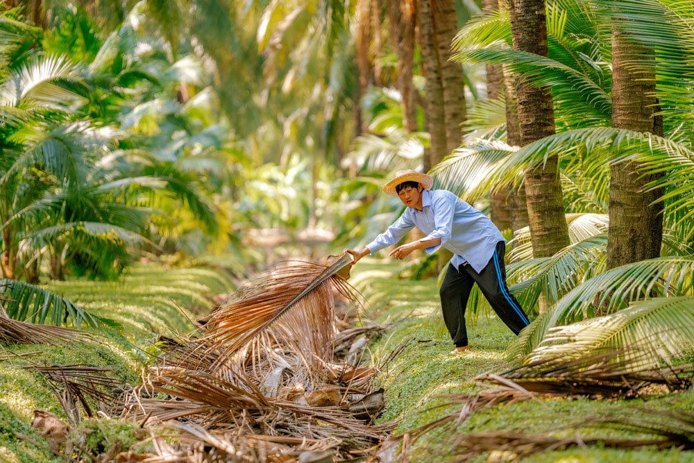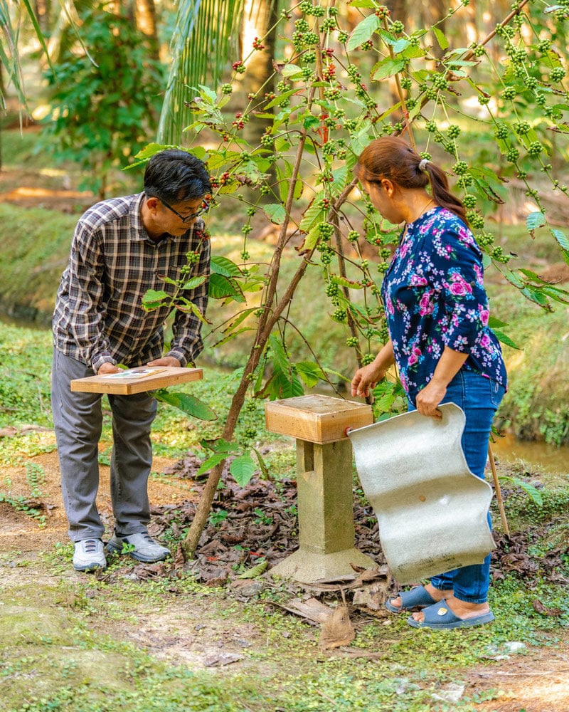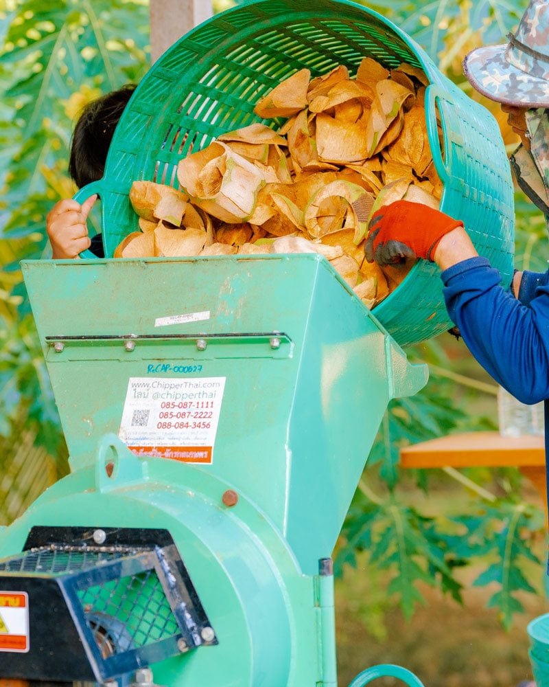 Khun Bandit and his family are leading the charge on implementing Nam Hom coconut regenerative organic practices, including pollinators, coconut husk compost, and intercropping.