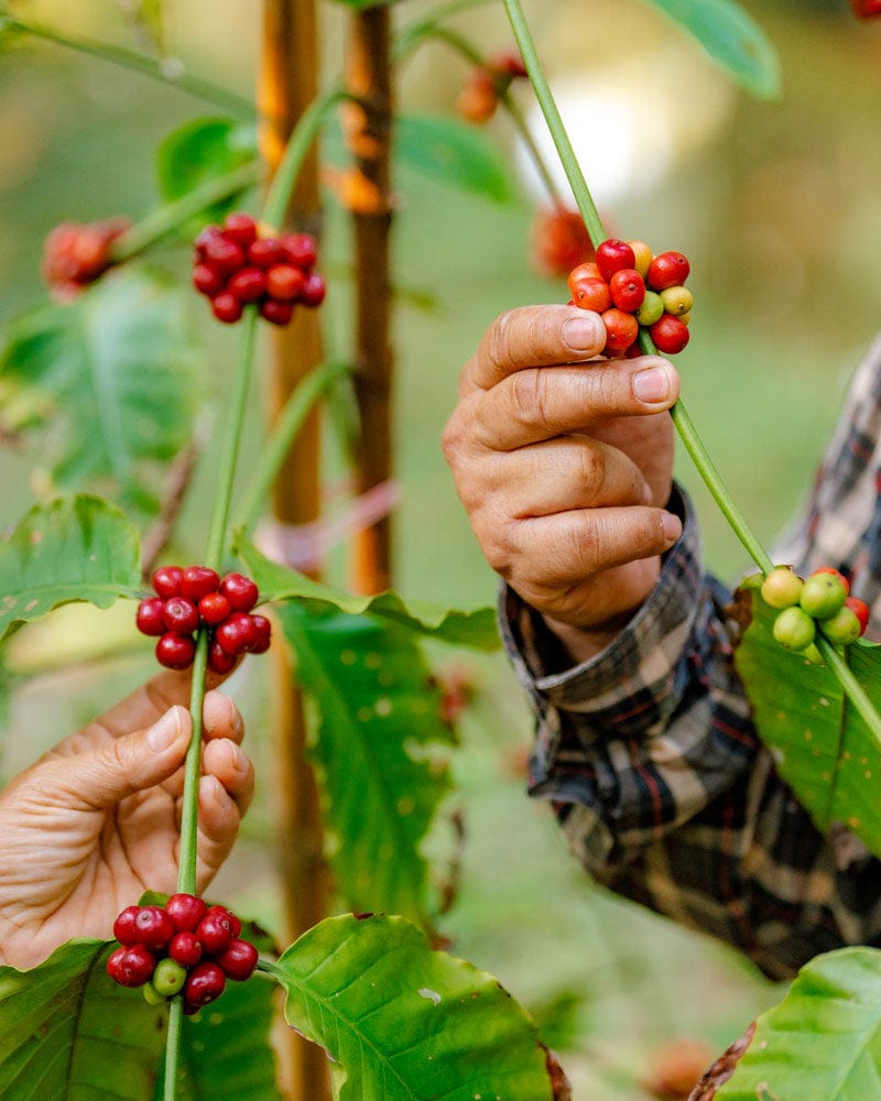 Intercropping means farming more than one crop on a farm. This helps with biodiversity and creates more financial opportunity for farmers. Khun Bandit has started growing coffee. We’re all still in the learning phase on how to make intercrops as successful as our Nam Hom coconuts, but we’re excited for the journey ahead!